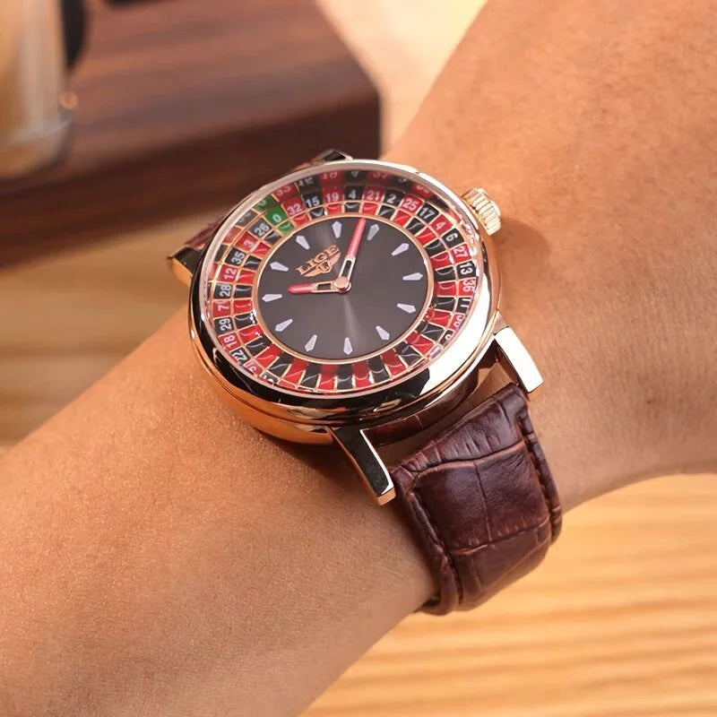 O Relógio LIGE combina sofisticação, modernidade e ousadia, trazendo um design inspirado na roleta de cassino que impressiona à primeira vista. Seu mostrador elegante com acabamento dourado e pulseira em couro legítimo é a escolha perfeita para homens que gostam de se destacar com autenticidade.